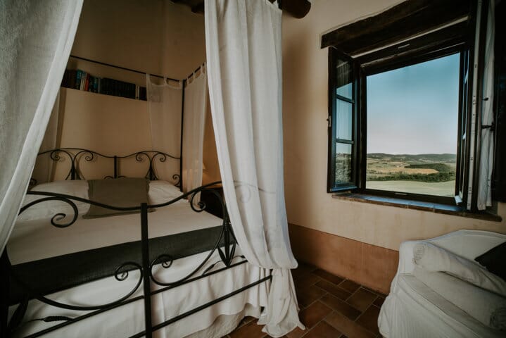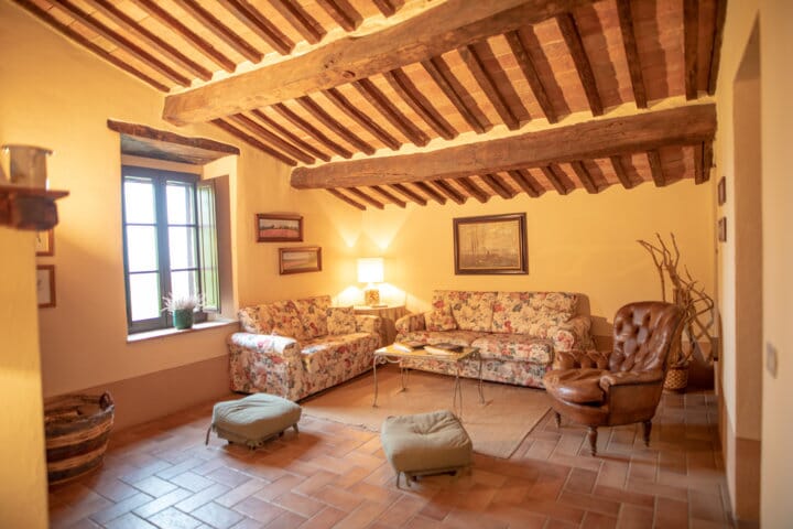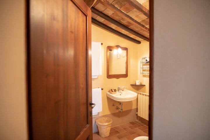 Small and intimate apartment located inside an ancient stone farmhouse recently restored, which is spread over two floors. St. Eustachio is located near the large main swimming pool. The farmhouse enjoys a beautiful panorama, formed by gentle slopes, small lakes, and the Val d'Orcia.
